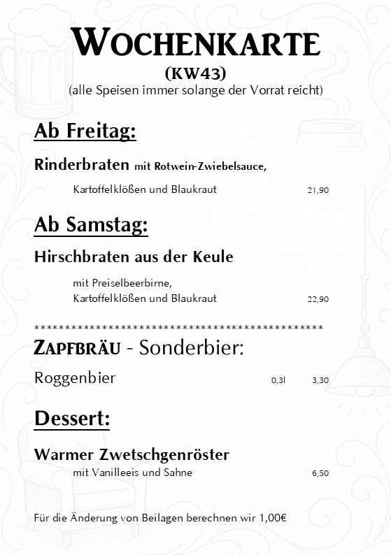 zur Abholung oder auch zum Verzehr im Wirtshaus.